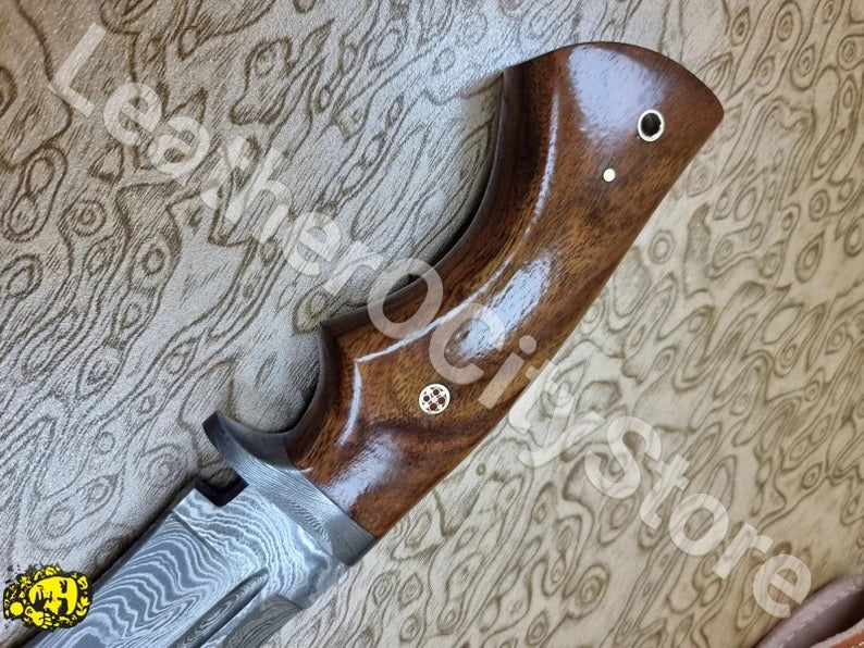 11' Inch Handmade Damascus Steel Hunting knife Wood Handle leather Sheath, Hand forged Damascus knife Non-slip walnut