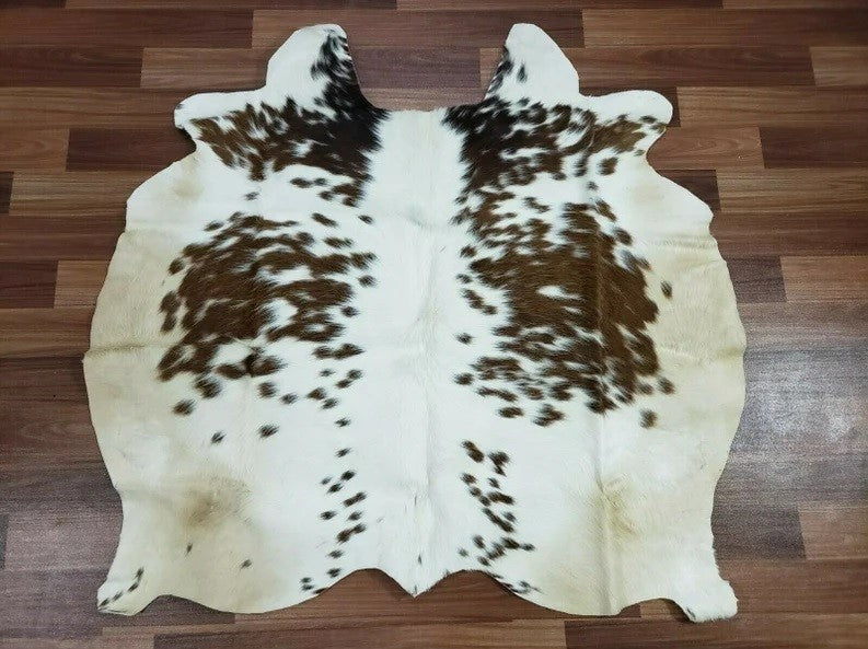 Cowhide Rug Exotic Brown and white Real Hair on Cow Hide Skin Area Rugs 10 sqft - 39" x 36"