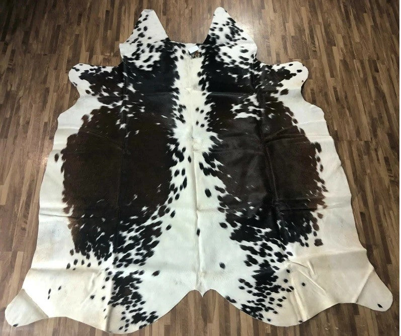 Upgrade your home with this elegant cow skin area rug with a Black Brown/White pattern.