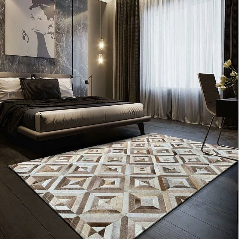 Cowhide Rug Patchwork Carpet Grey Beige Patchwork Cow Hide Gray Cow Skin Leather Area Rug Hair On