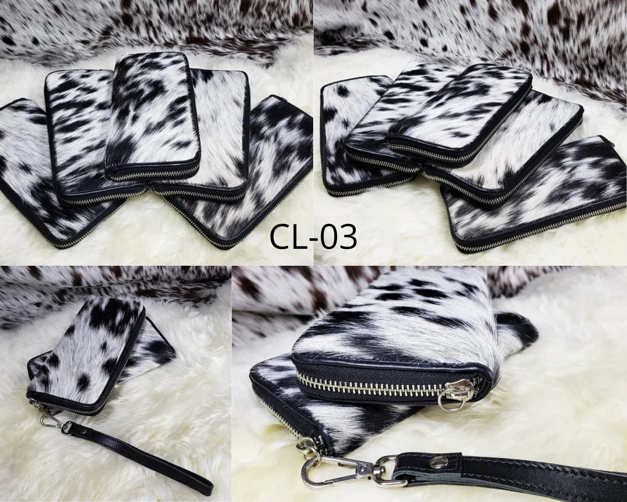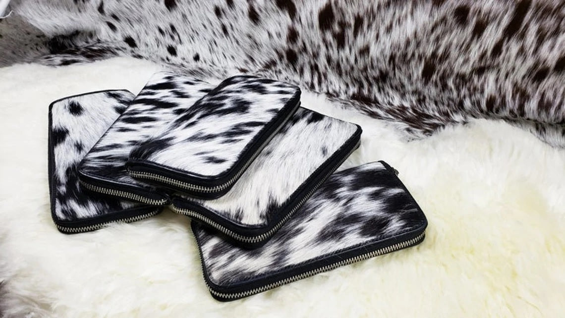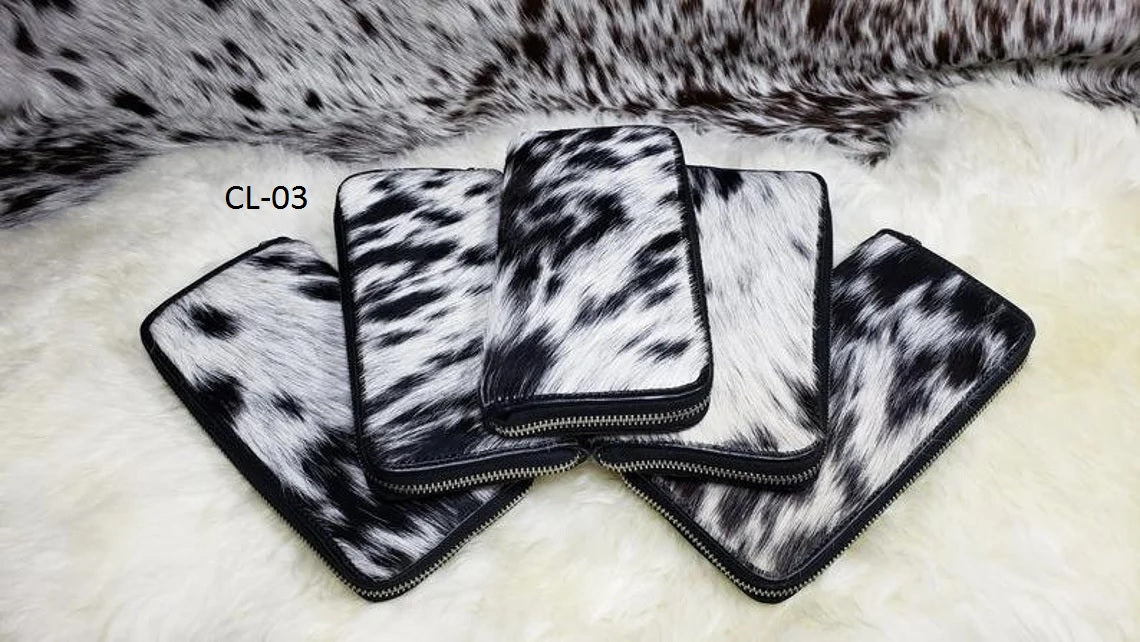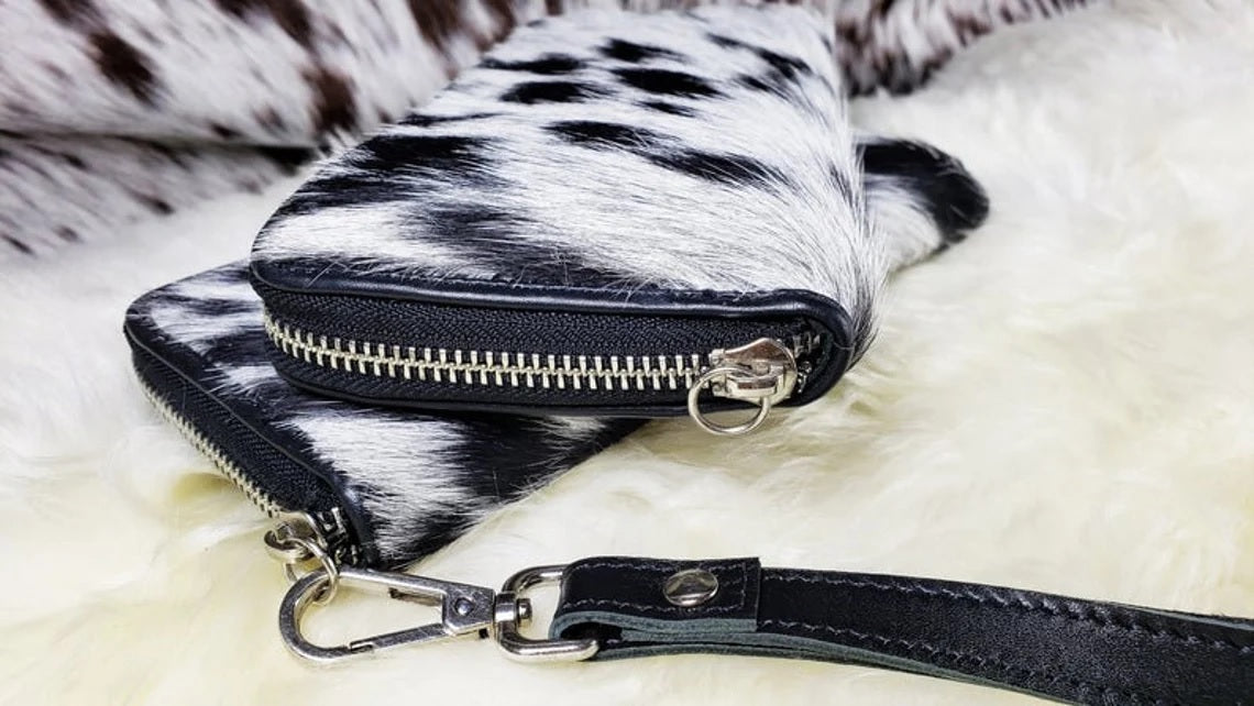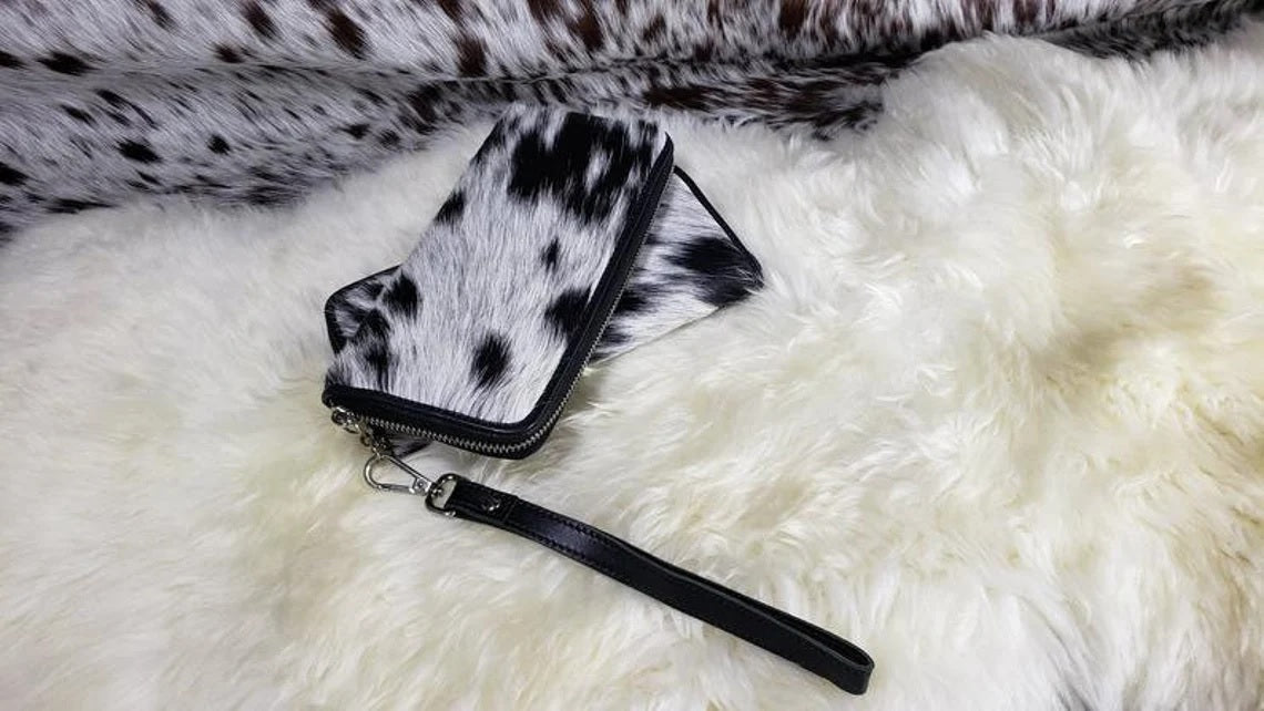 Real Cowhide Wallet Genuine Leather Handmade Wrist let and Zipper Wallet, Fur Purse Wallet, Handbag, Organist for women.