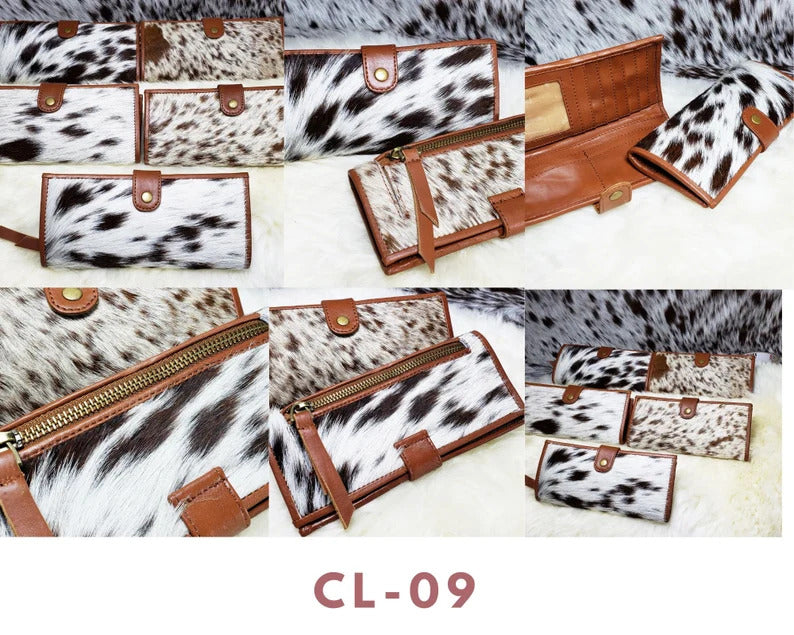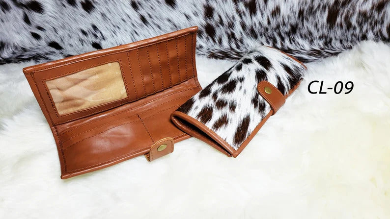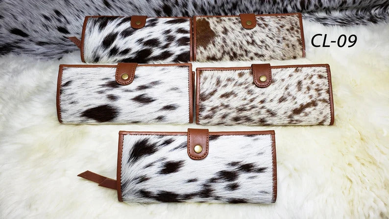 Real Cowhide Leather Brown, Black and White Cowhide Clutch Premium Quality.