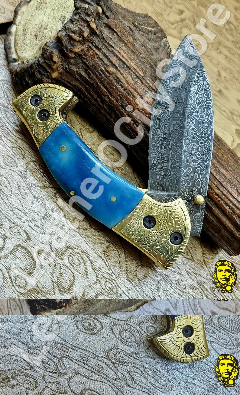 Damascus Pocket Folding Knife Custom Pocket Knife Groomsmen gifts Anniversary Gifts Authentic Damascus Steel Blade Gift for Husband