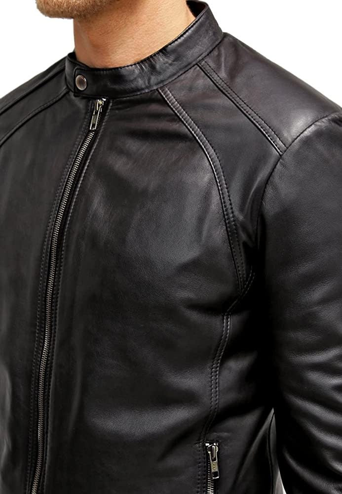 Distressed Biker Black Men Leather Jacket, Real Black Leather Jacket With Band Collar Mens leather Jacket | Top Quality Leather Jacket men