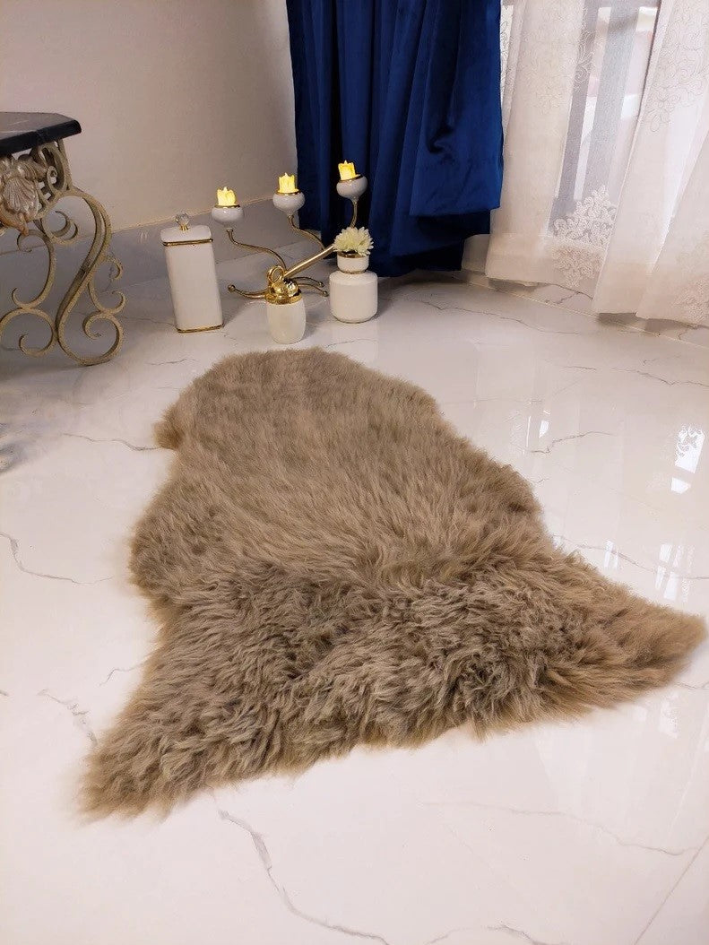 Genuine Real Sheepskin Rug Taupe Sheepskin Rug Single Pelt Wool Fur Throw Floor Rug 2 x 3.