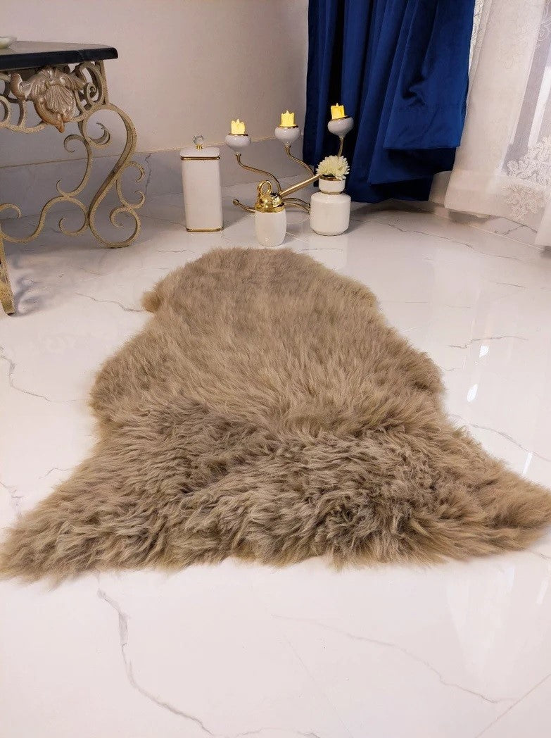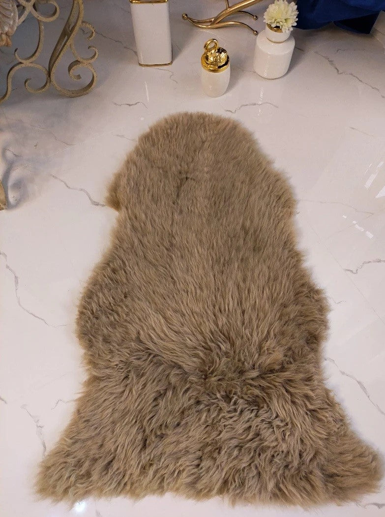 Genuine Real Australian Sheepskin / Lambskin Rug | Sheepskin throw | Chair Cover | Soft and Silky Rug | Taupe Single Pelt 2x3