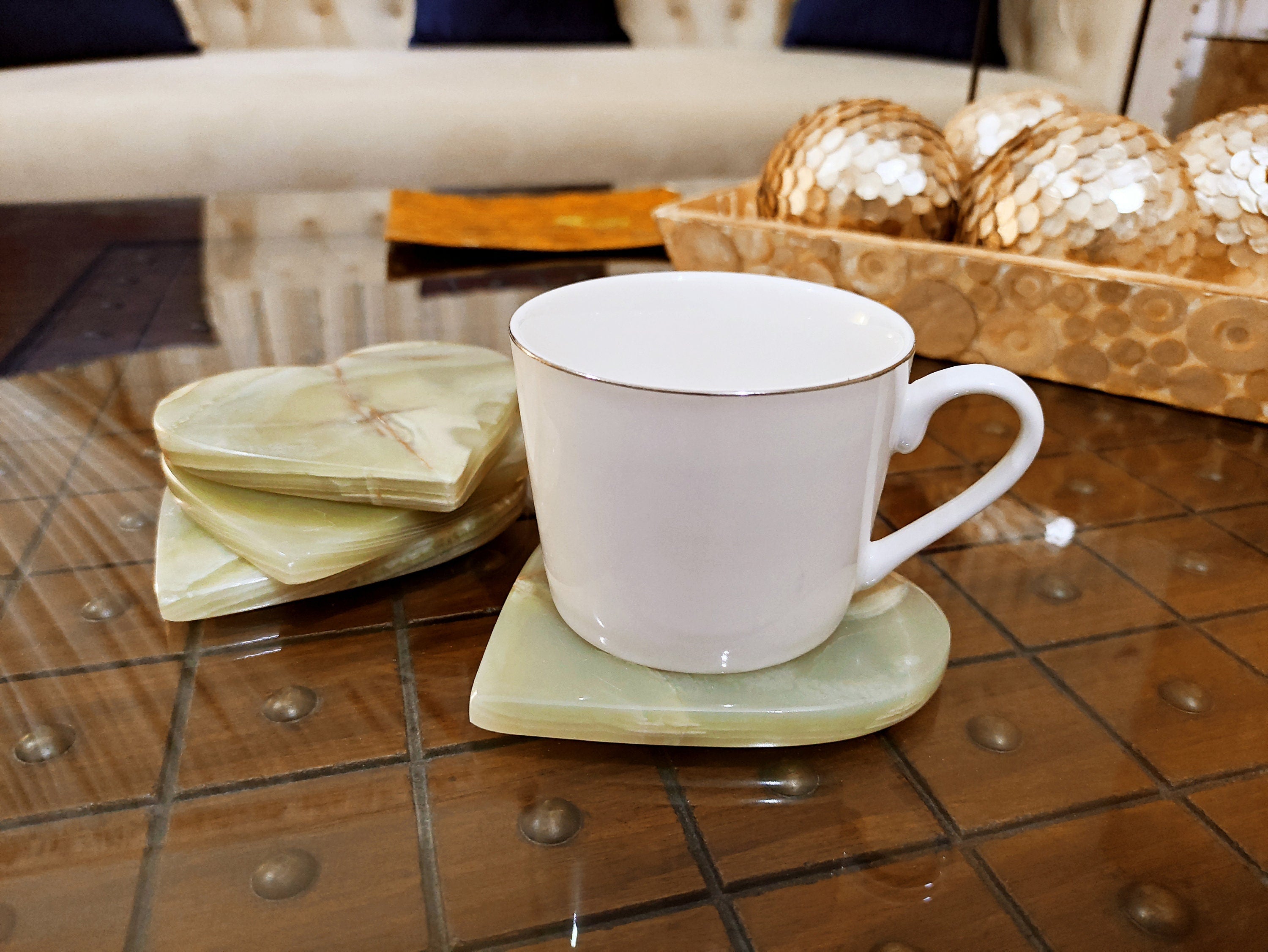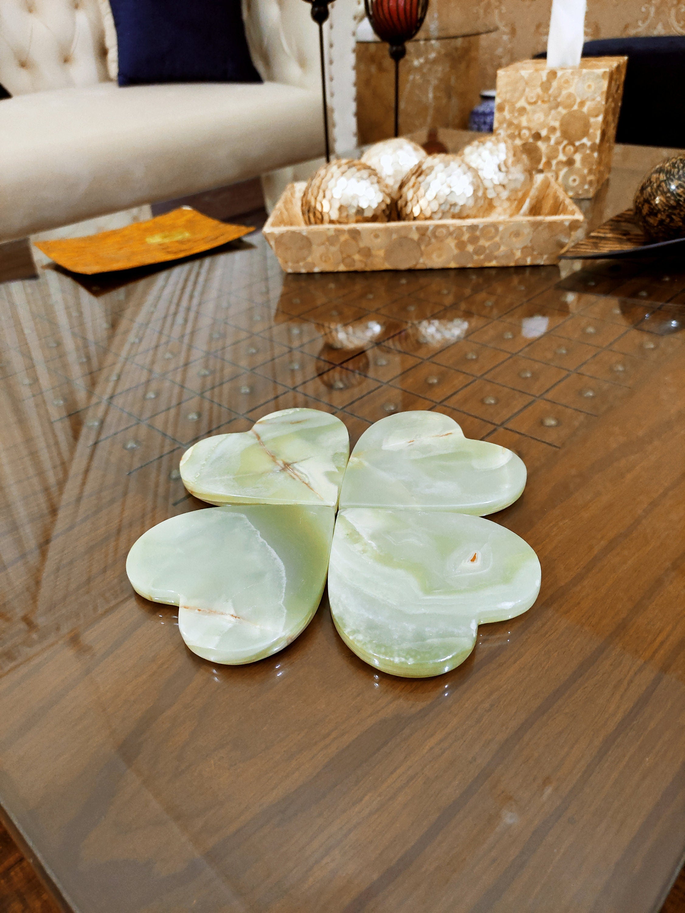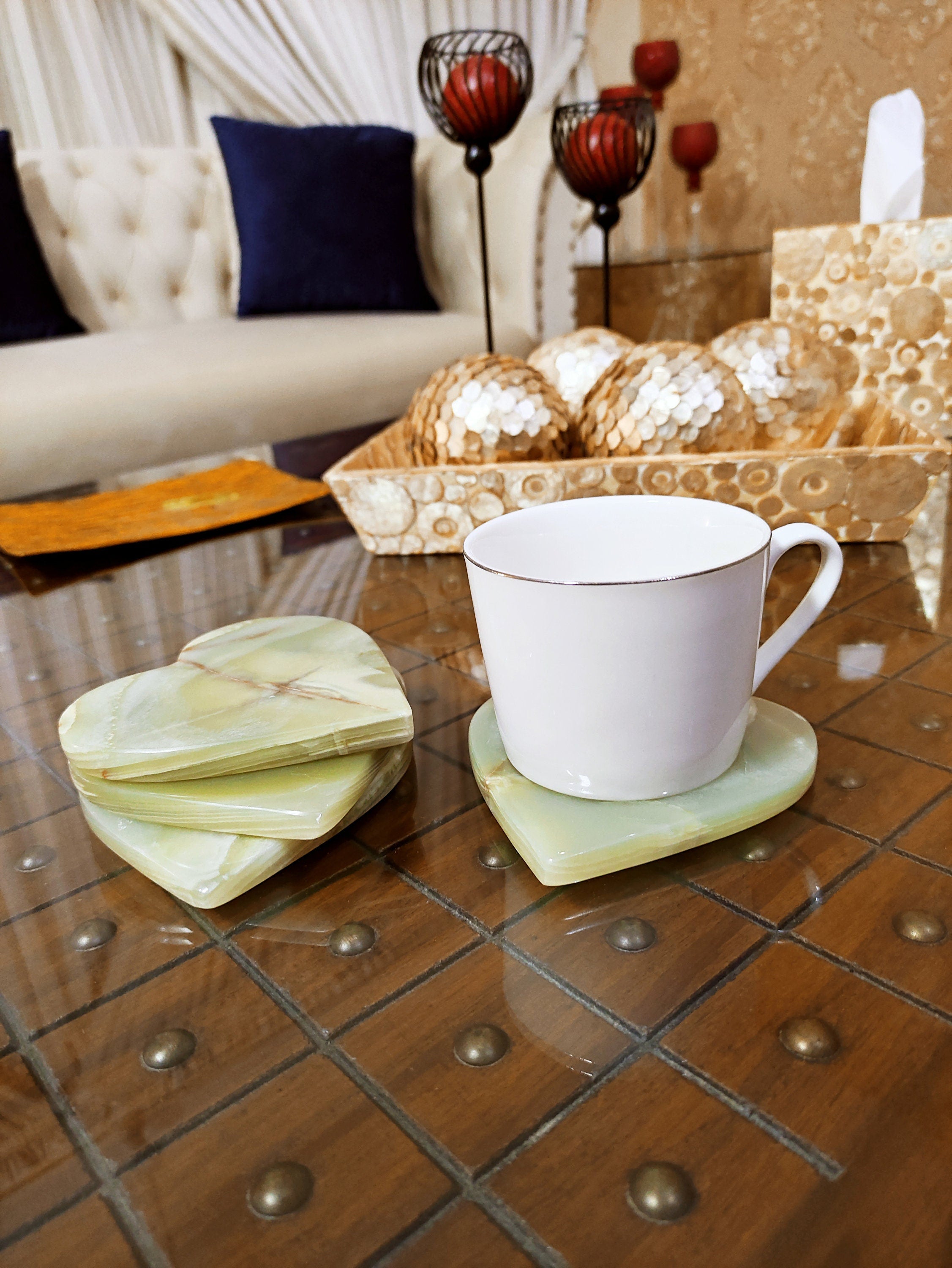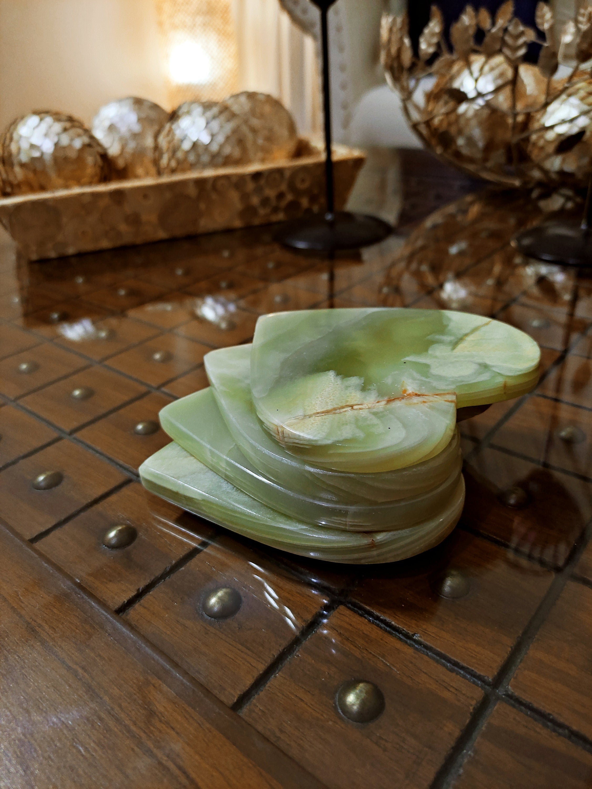 Green Onyx Marble Coaster Set, Green Onyx Marble Heart Shaped Coasters Tea Coaster Drink Coasters Bar Accessories, Stone Tea Coasters