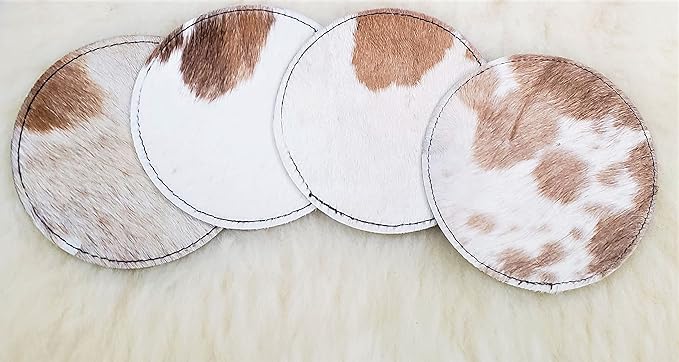 Handcrafted Real CowHide Leather Coaster Set / Cowhide Coaster Set / Hair-on Coasters / Roan / Unique Western / Genuine Leather / Cow Hides