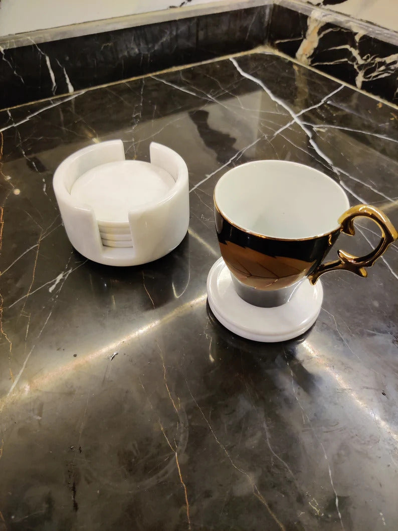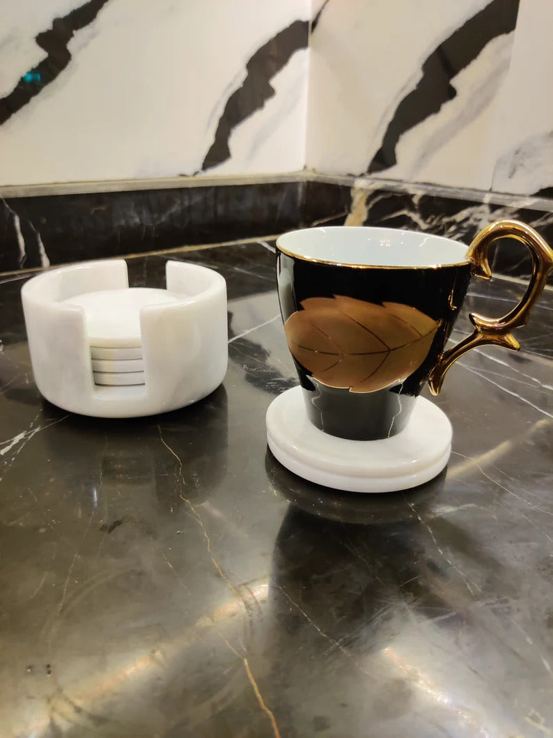 Handmade Classy Marble Coaster Set Cup Pad With Holder Absorbent Marble Non-Slip Cork Back Bar Accessories Marble Coffee Table Minimalist