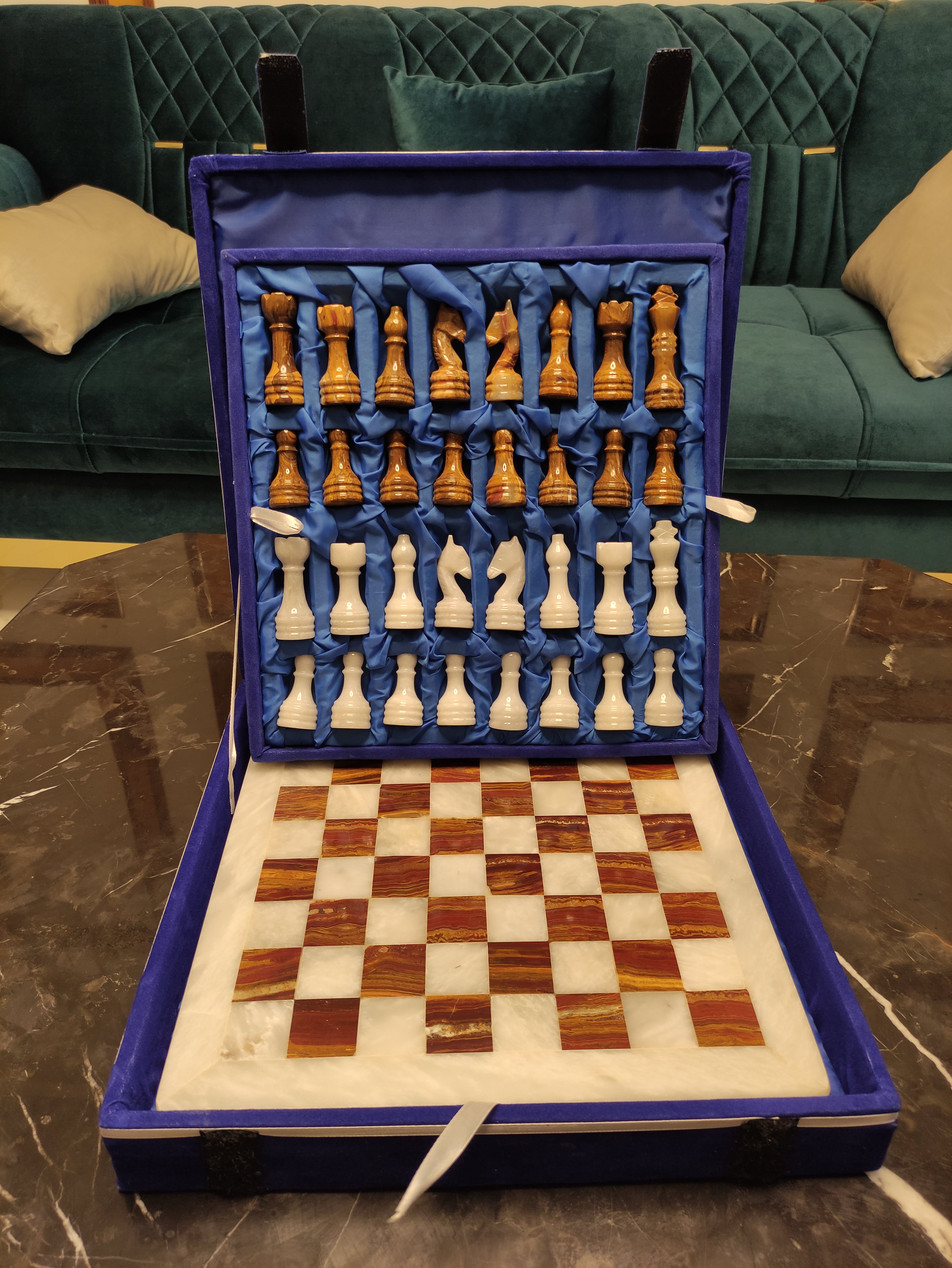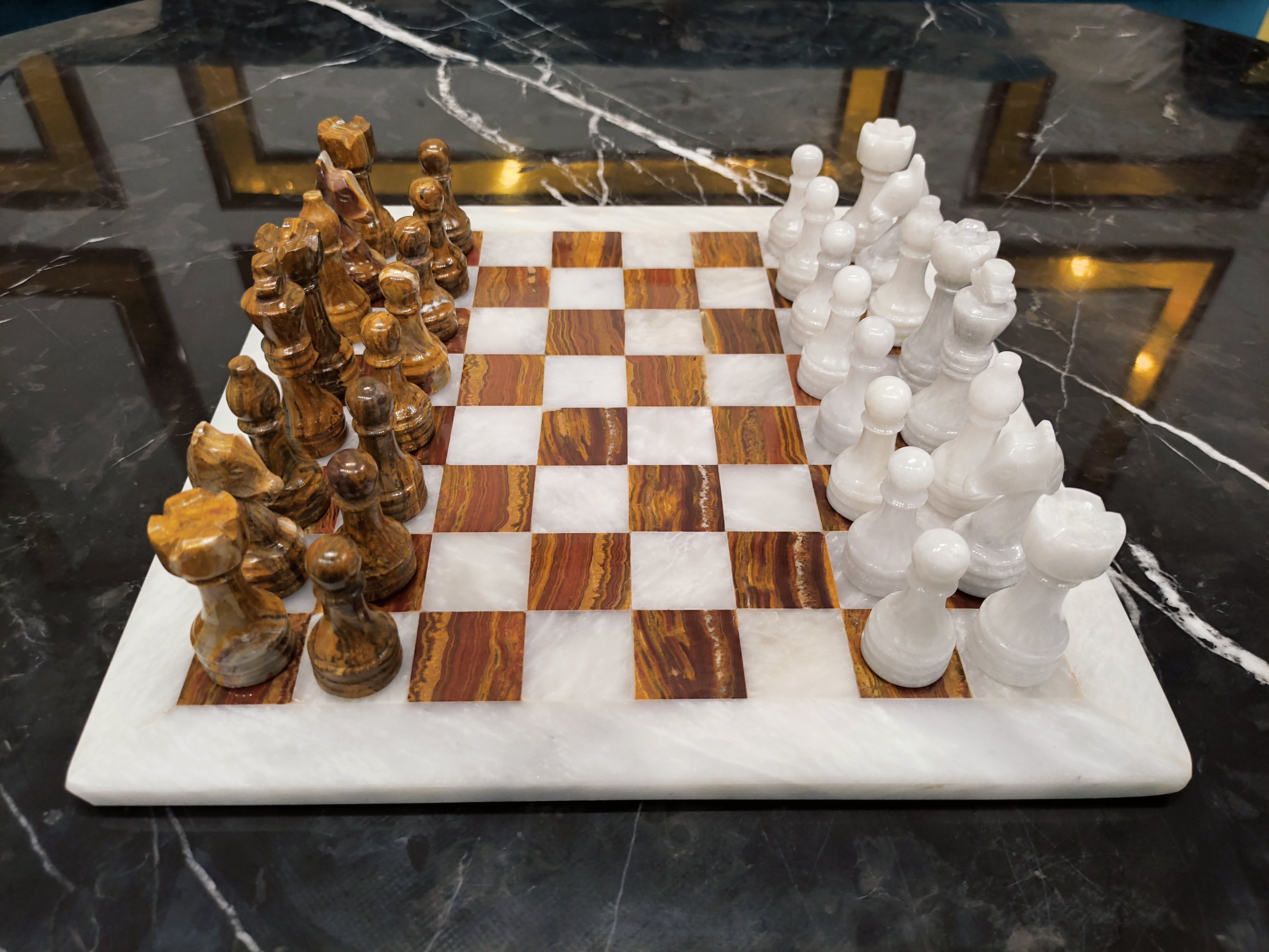 Handmade Marble Chess Set Indoor Adult Chess Game Marble Chess Board Handcraft 16" x 16" And 12" x 12"Premium Top Quality Chess