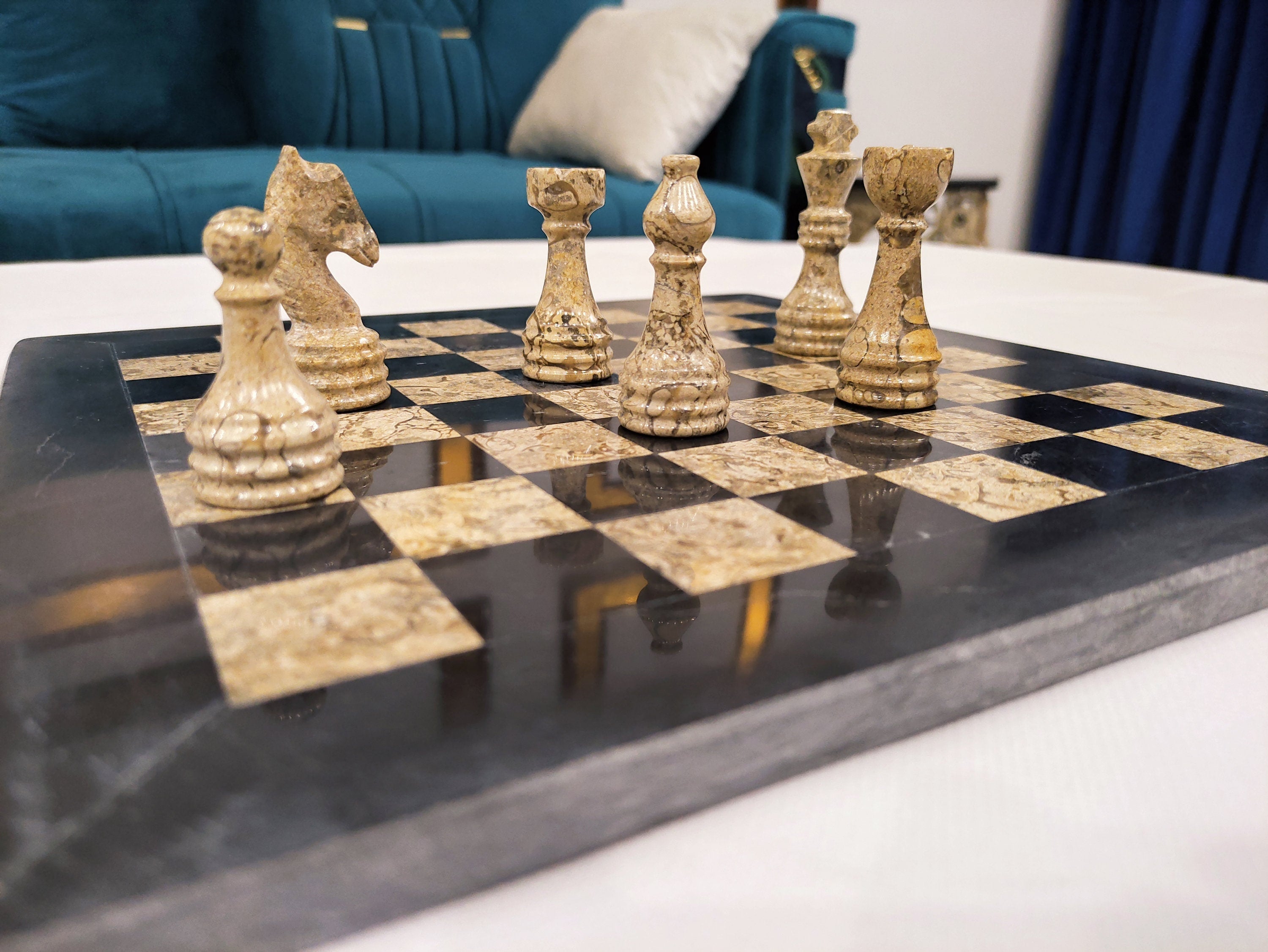 Handmade Marble Chess Set Indoor Adult Chess Game Marble Chess Board Handcraft 16" x 16" Premium Top Quality Chess Board