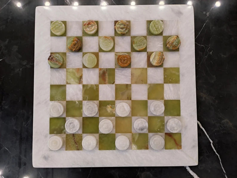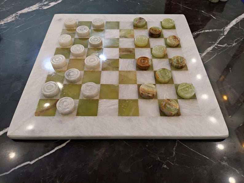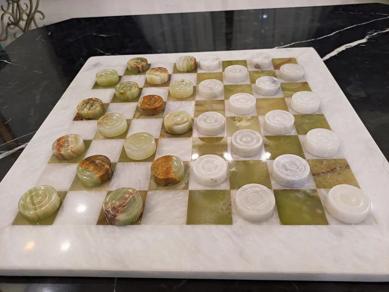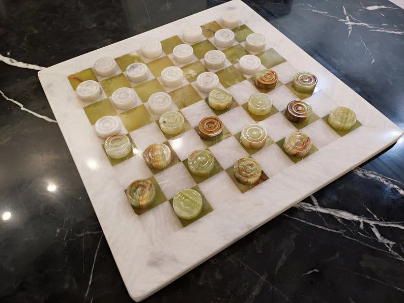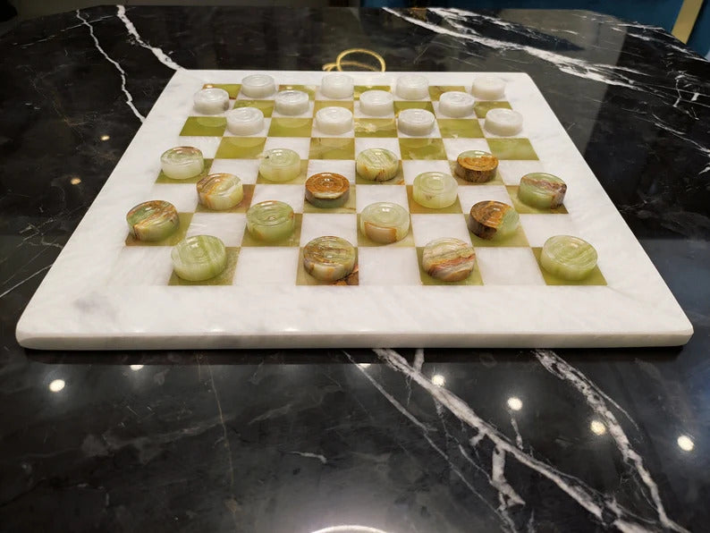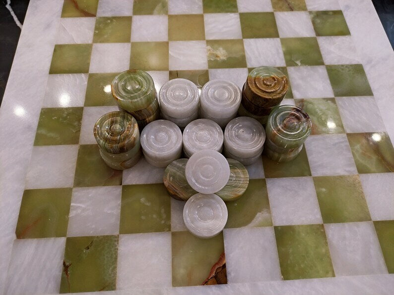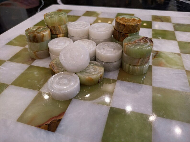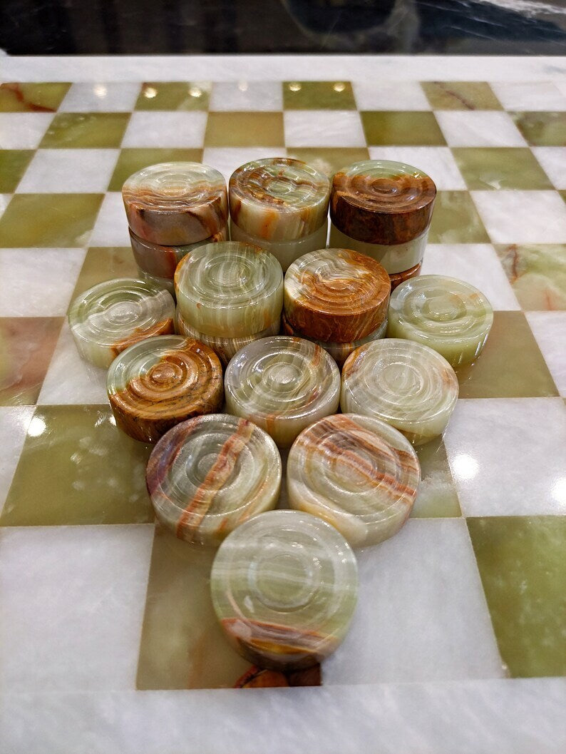 ► MATERIAL: This checkers set is fully handmade from high-quality marble onyx. Checkers Board & pieces are fully handed polished.