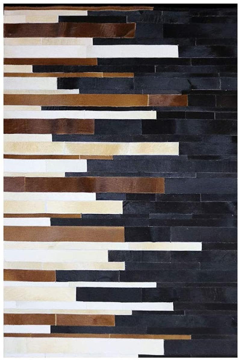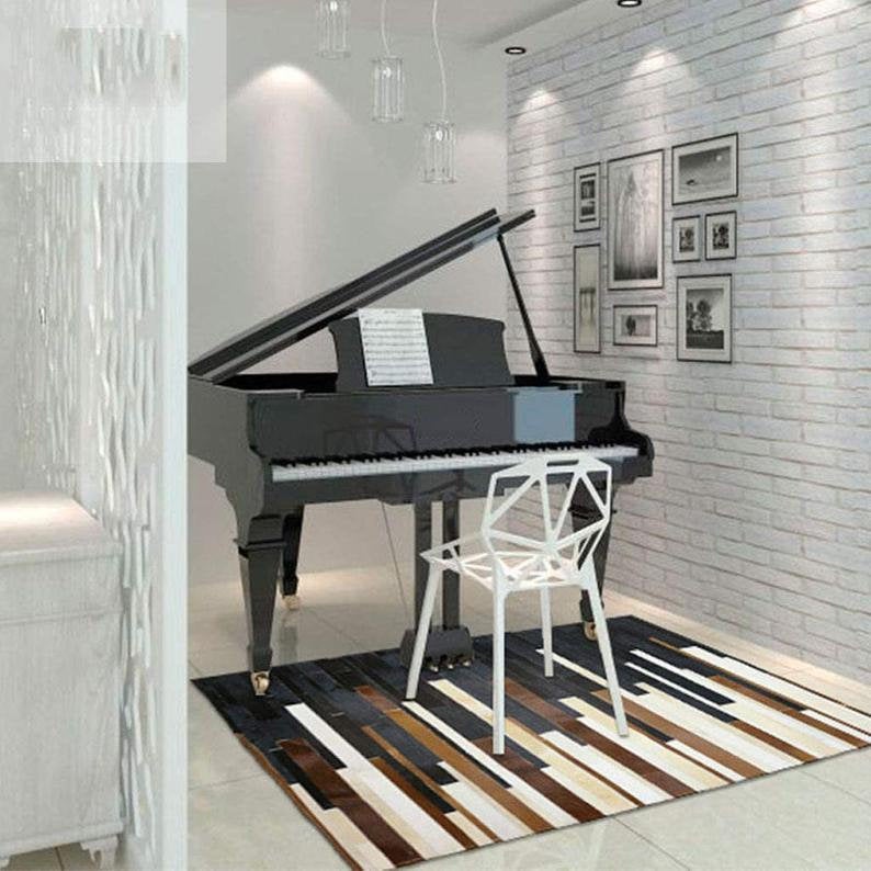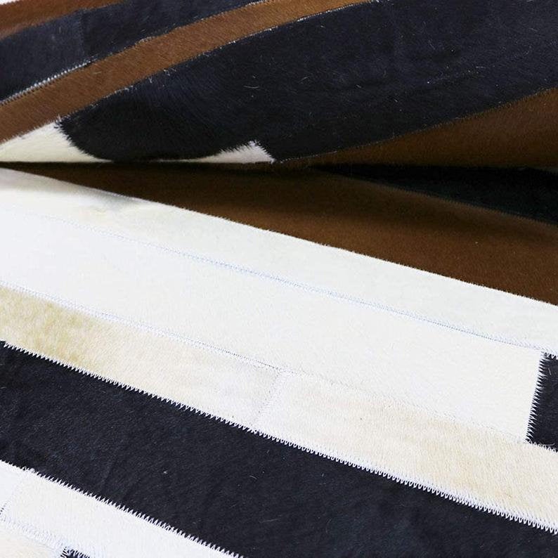 Handmade Tricolor Cowhide Rug Brown Black White Tri Color Patchwork Stripe Hair On Hide Area Rug | Patchwork