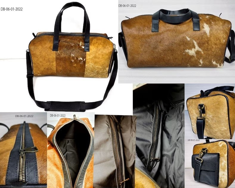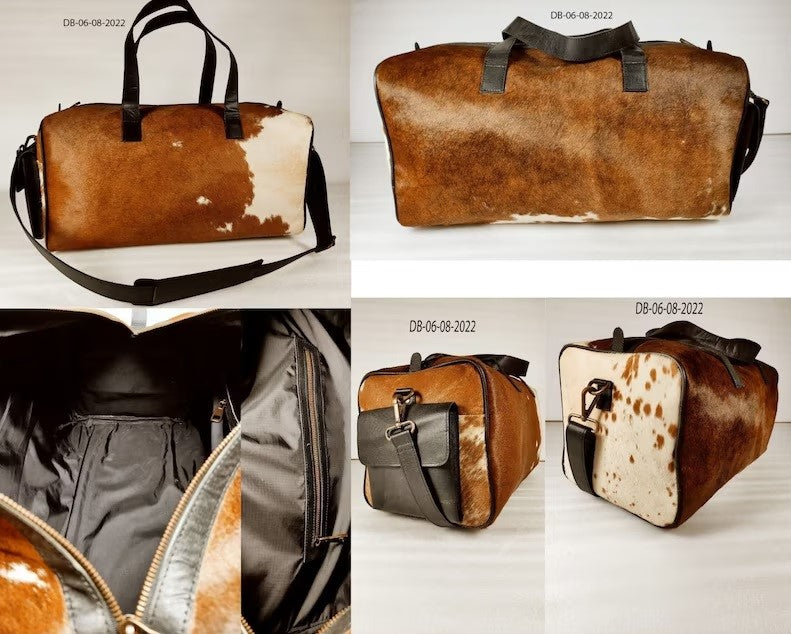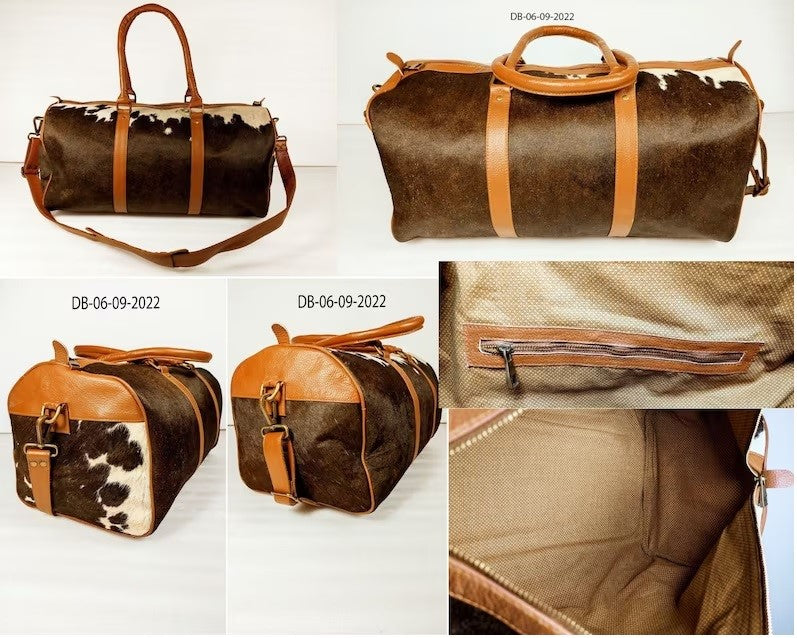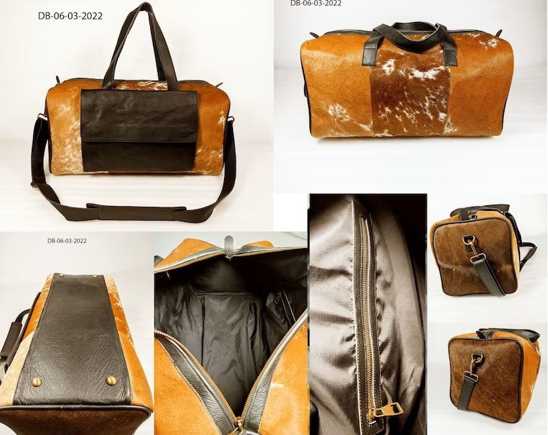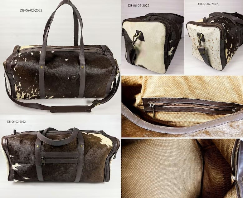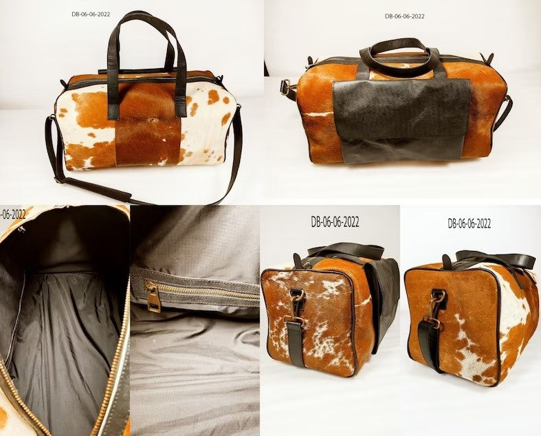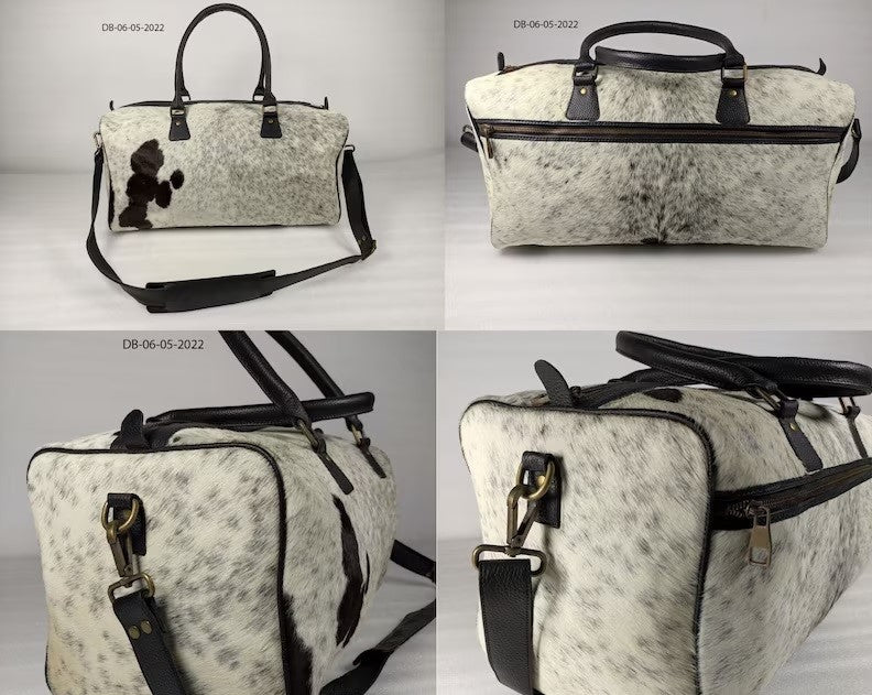 Handmade real cowhide hair on leather, this weekender is smooth and sleek in style. Whether it's an overnight stay or a week-long business trip, this sturdy bag makes traveling easy.