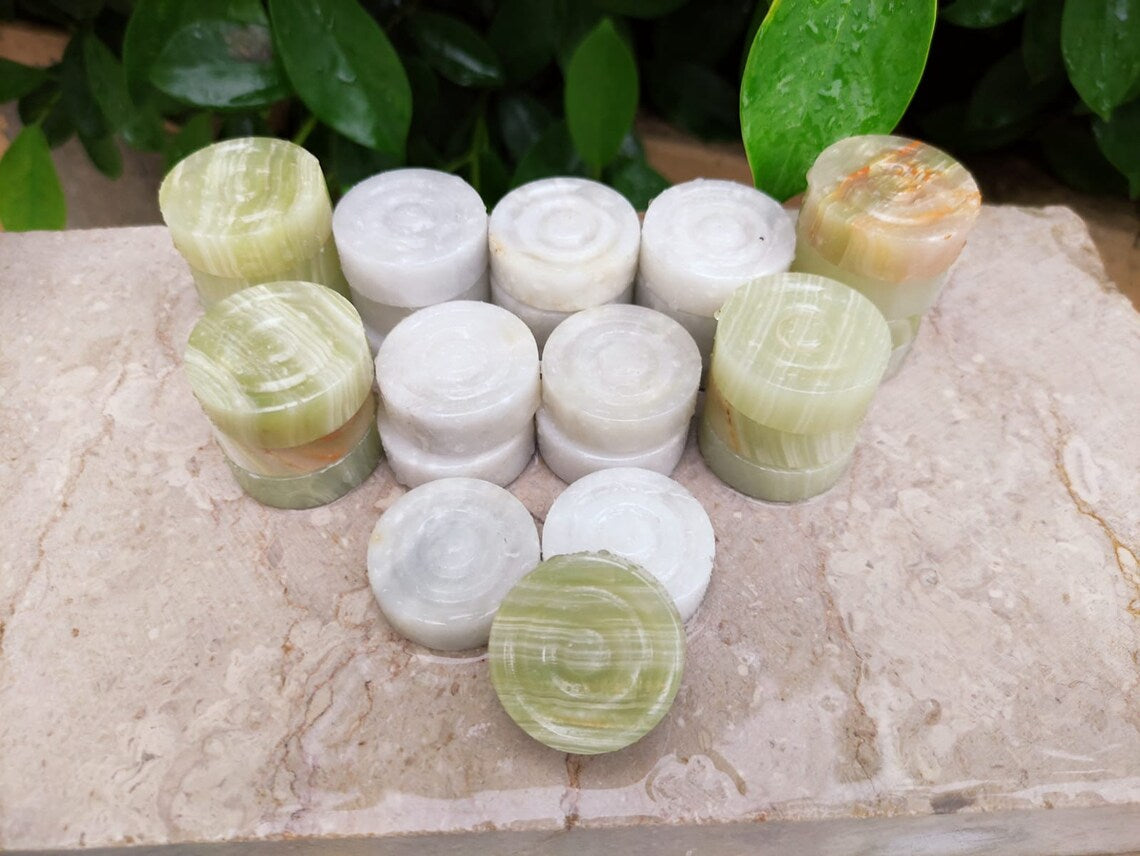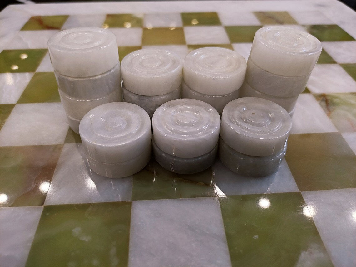 ► MATERIAL: These checkers pieces are fully handmade from high-quality marble onyx and fully hand polished.