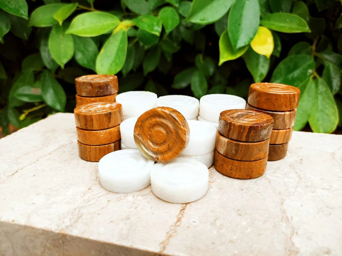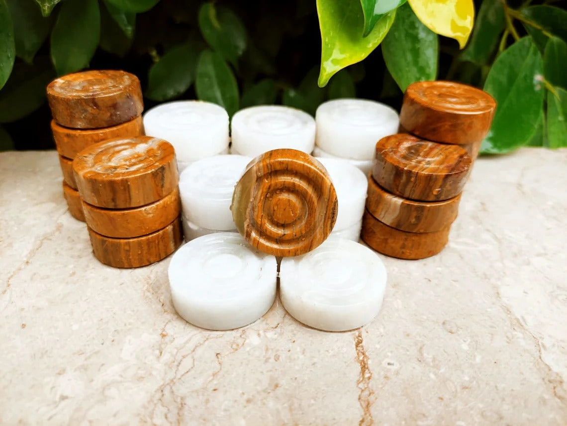 ► MATERIAL: These checkers pieces are fully handmade from high-quality marble onyx and fully hand polished.