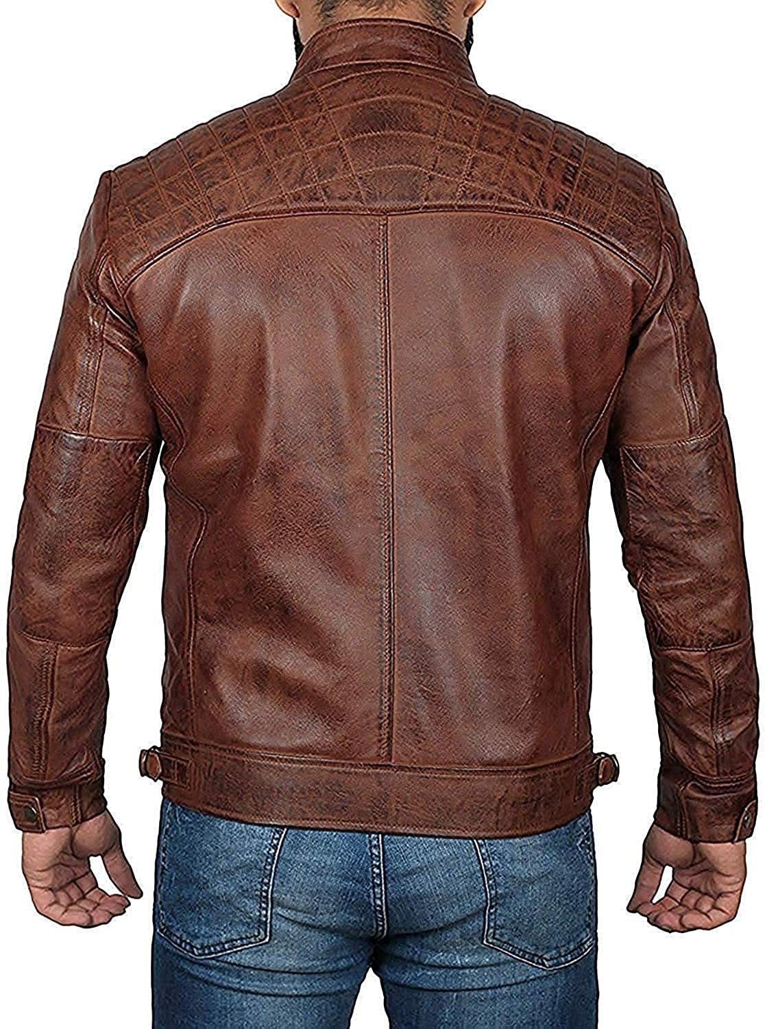 Men Leather Jacket, Real Brown Biker Leather Jacket for Mens Vintage Band Collar Designer Coat Scott | Top Quality Leather Jacket men Sale