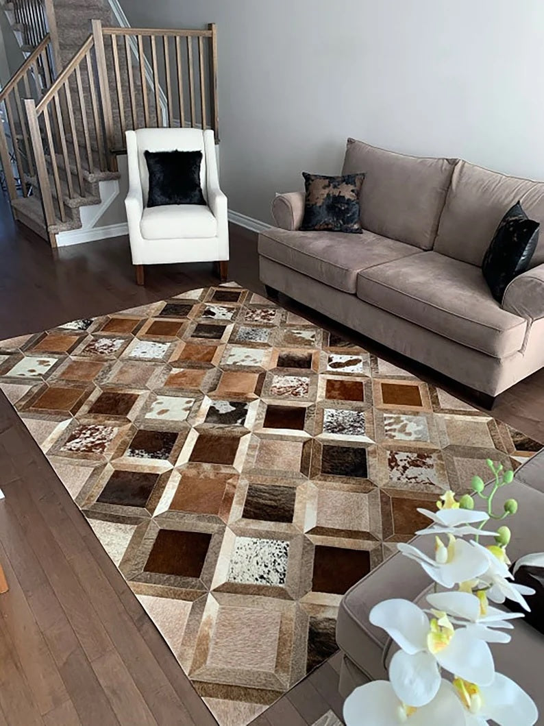 Natural Cowhide Leather Area Rug | Handmade Interior Floor Carpet | Comfy Home Décor Rug | Hairon Leather Patchwork Rug | Hallway Runner custom made