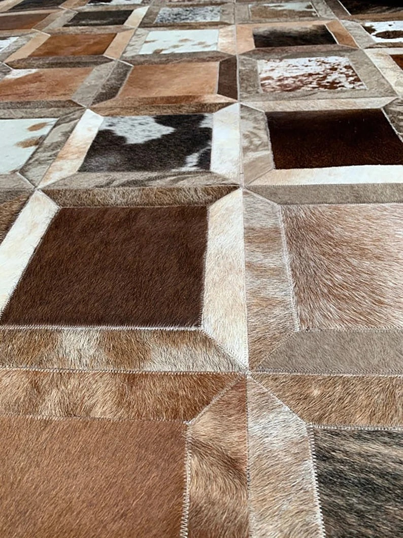 Cowhide Rug Patchwork Carpet Grey and Sade of Brown Patchwork Cow Hide Gray and Brown Cow Skin Leather Area Rug Hair On