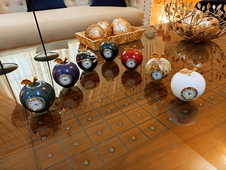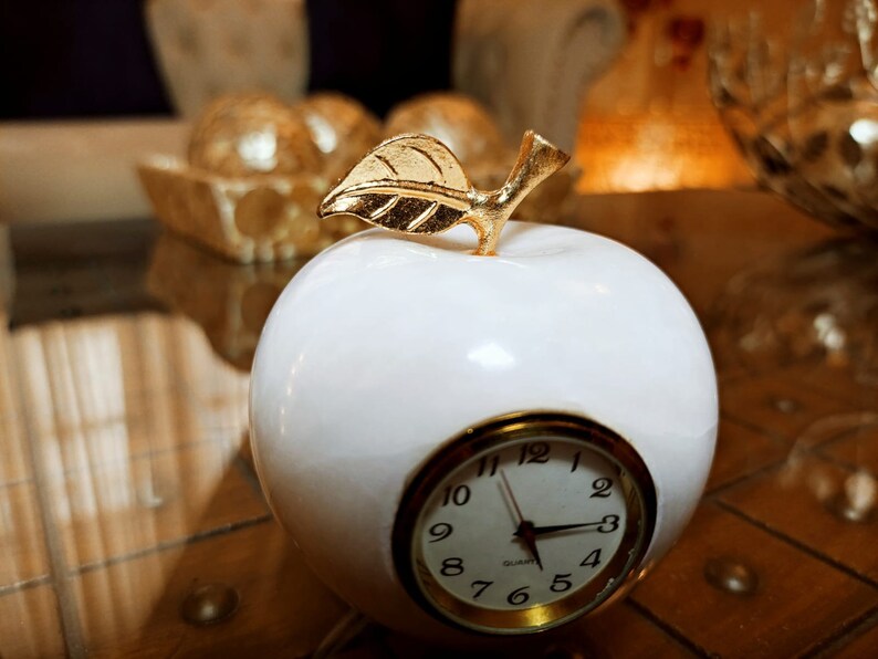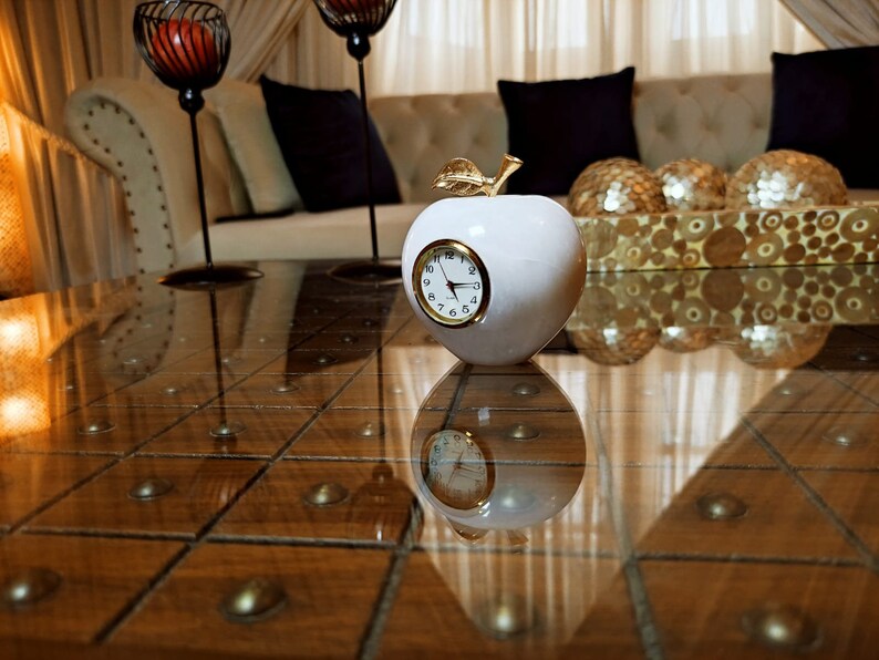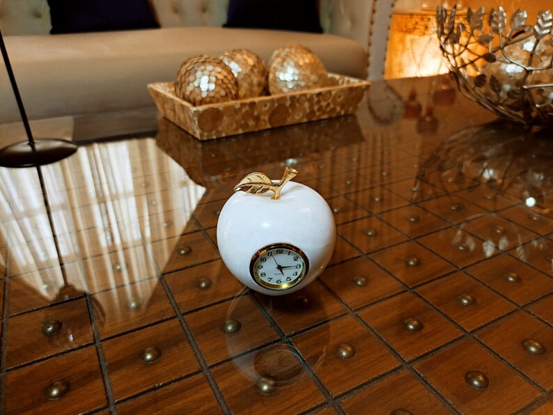 Onyx Apple Marble Hand Made Table Clock, Marble Home Decor, Living room Figurine, Natural Stone Onyx, Office Decor, Marble Clock Antique