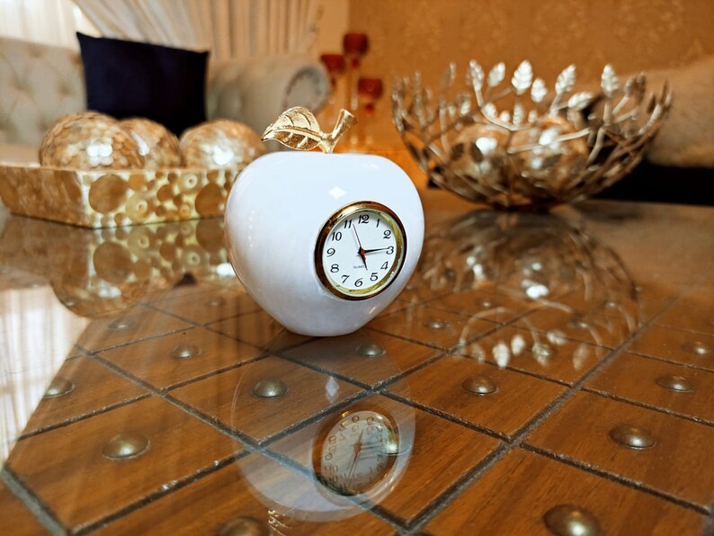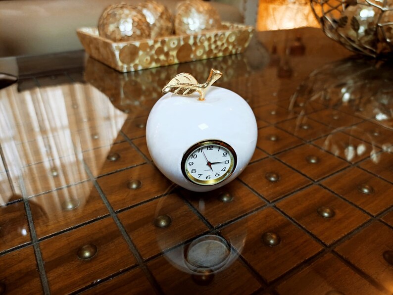 MATERIAL: Paperweight apple shaped clock. is made of high-quality onyx marble.