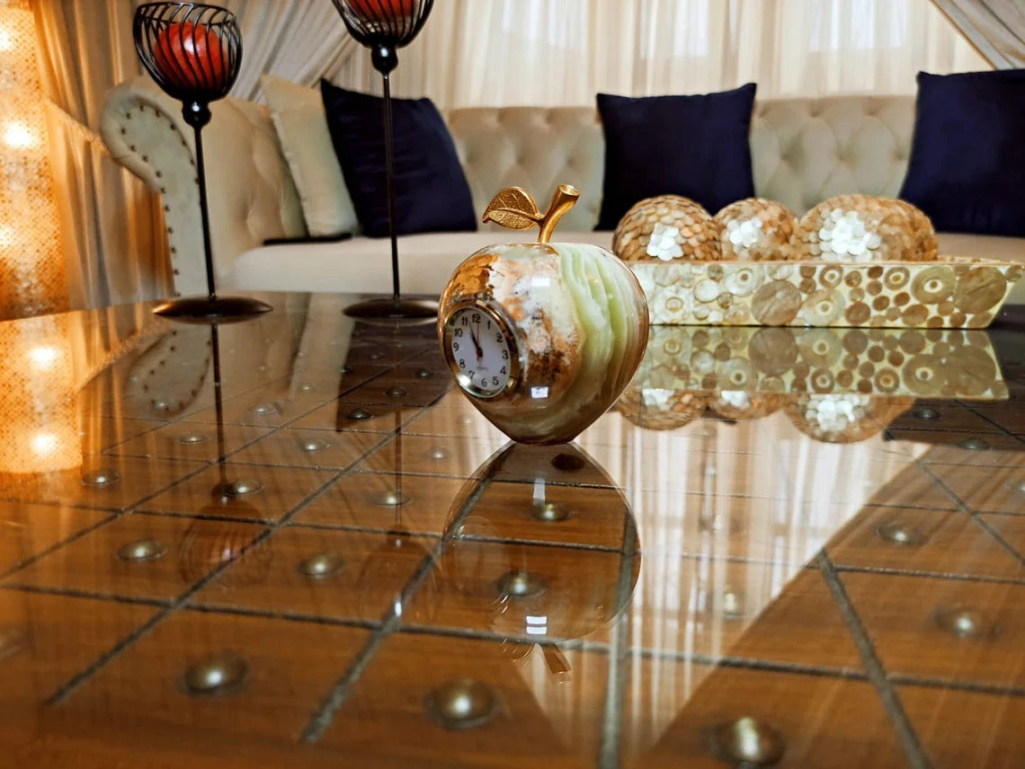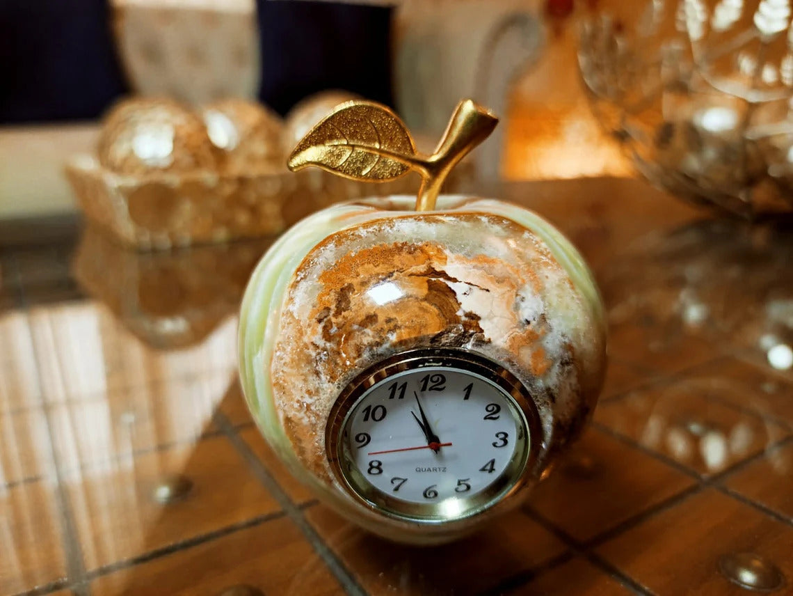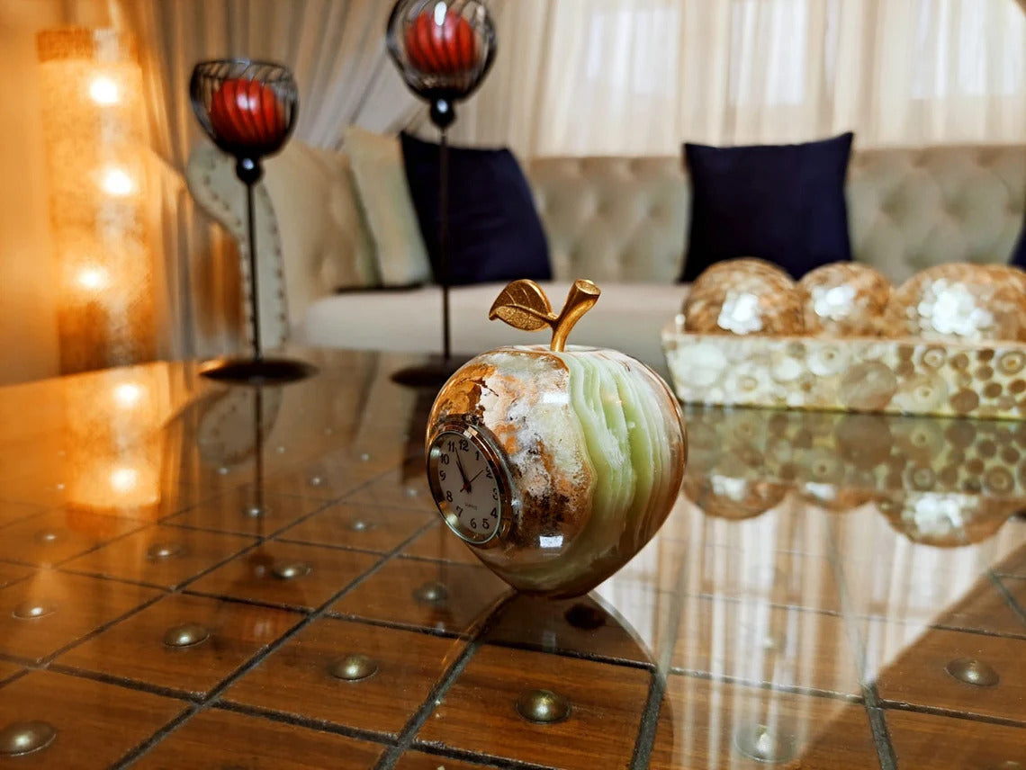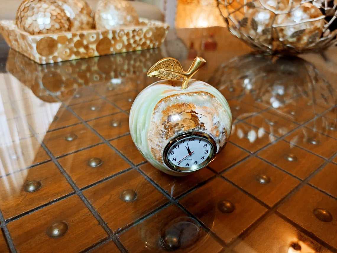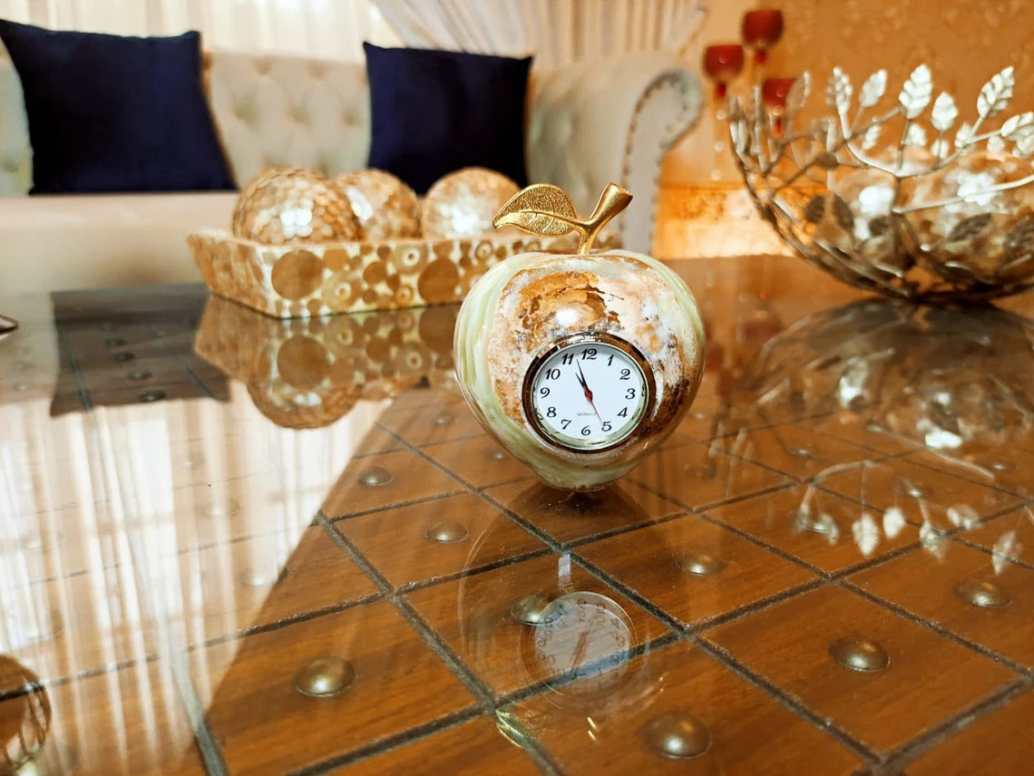 Onyx Apple Marble Hand Made Table Clock, Marble Home Decor, Living room Figurine, Natural Stone Onyx, Office Decor, Marble Clock Antique