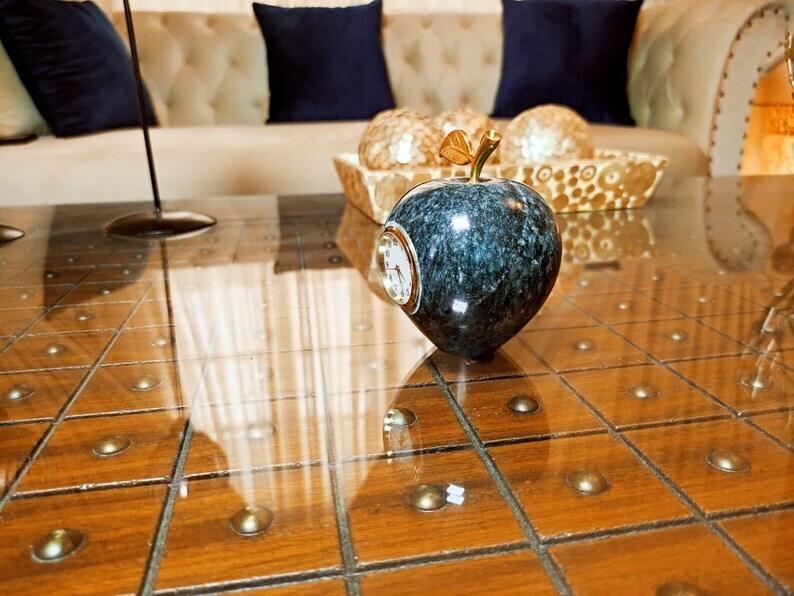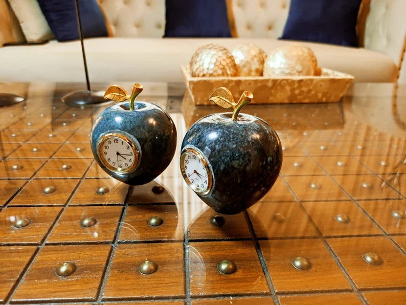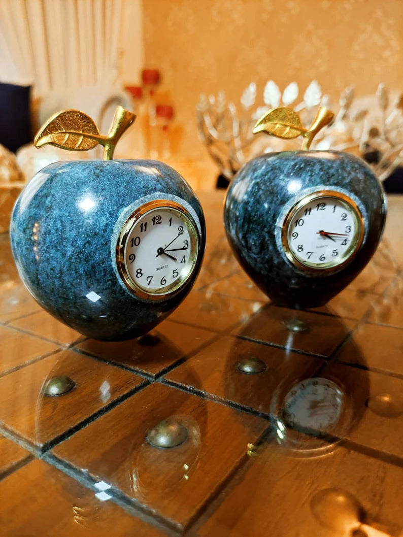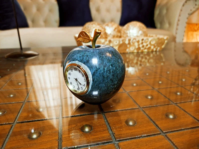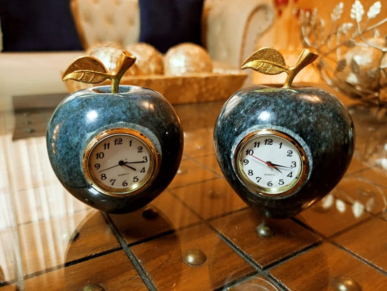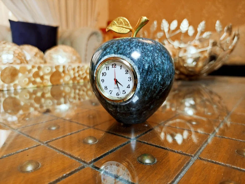 Onyx Apple Marble Hand Made Table Clock, Marble Home Decor, Living room Figurine, Natural Stone Onyx, Office Decor, Marble Clock Antique