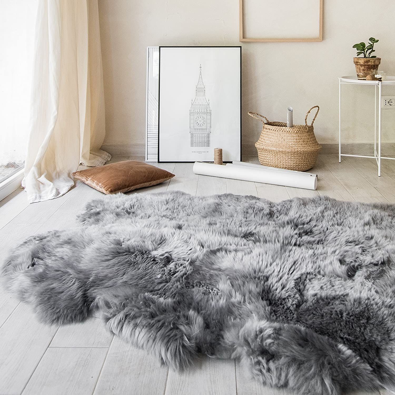 Premium Quality Quad Sheepskin Rug Natural Large Sheep Skin 4 X 6 Australian Sheep Skin Fluffy Gray SheepSkin