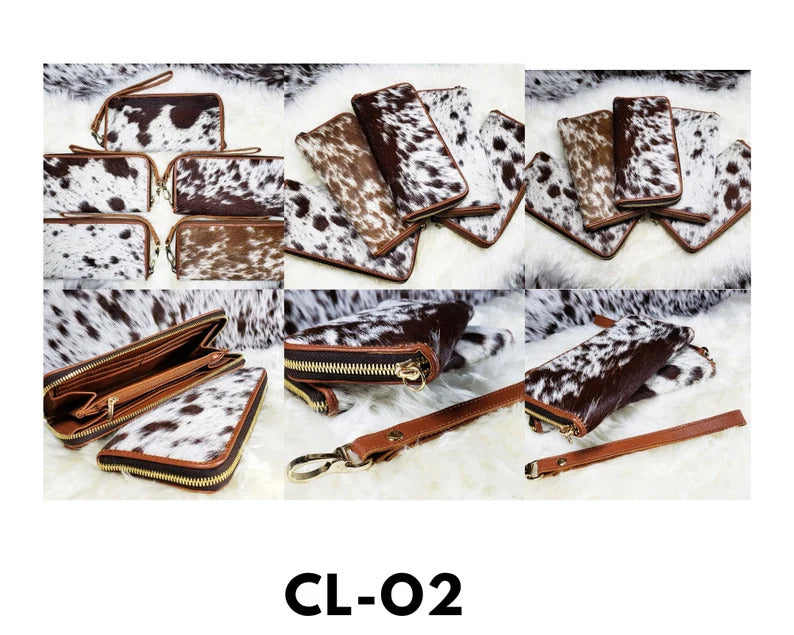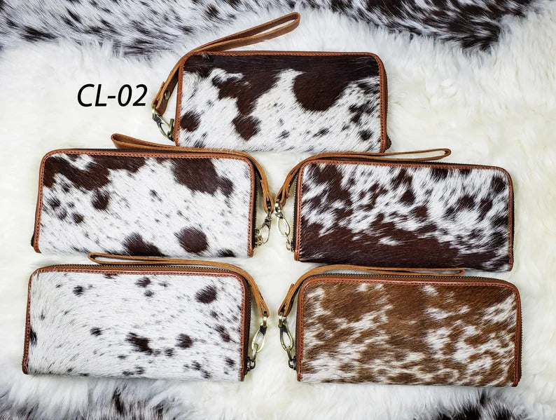 Real Cowhide Clutch Genuine Leather Handmade Wristlet and Zipper Clutch, Fur Purse Wallet, Handbag, Organiser for women