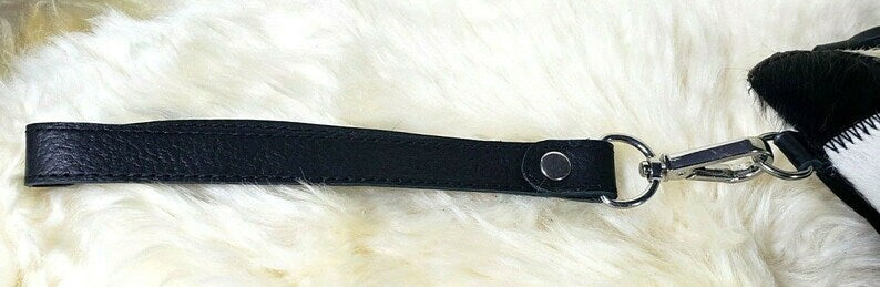 This listing is for a beautiful wristlet designed in genuine hair-on cowhide. The purse features cowhide on both sides. It features a secure zip closure with a stylish tassel pull and detachable strap both made in real leather. The inside is silk cloth lined and has cowhide on both sides.