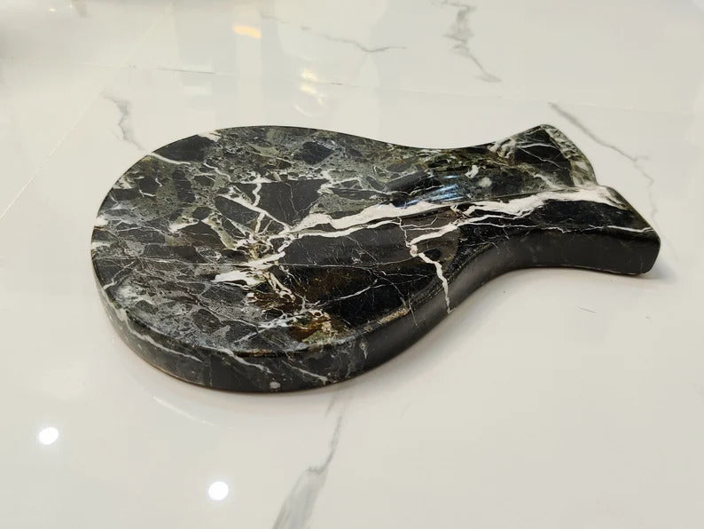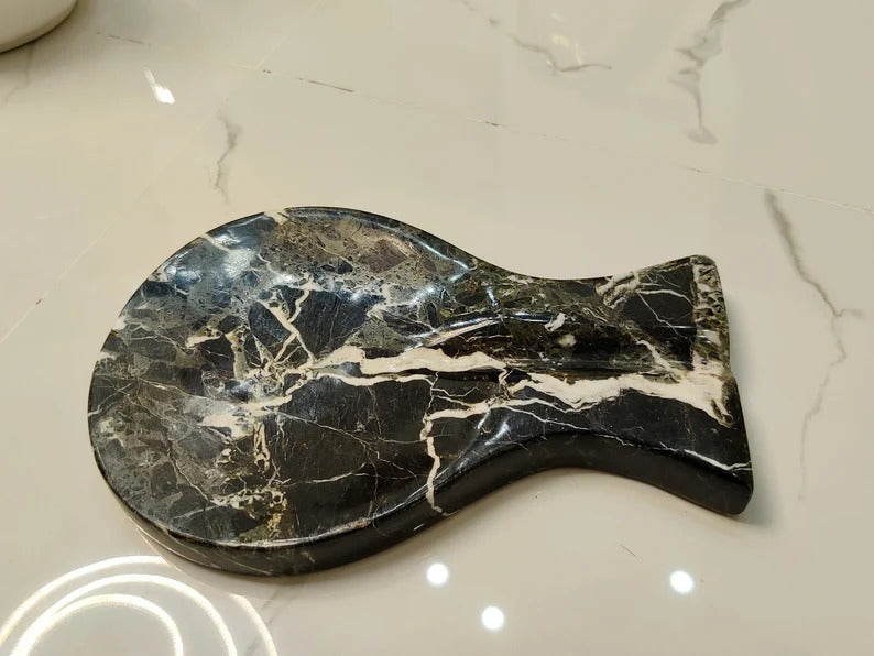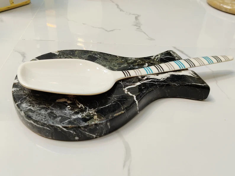 Spoon Rest Handmade Marble Black Spatula Fork Ladle Utensil Rest Keeper - kitchen Accessory Spoon Organizer Tool Spoon Holder gif