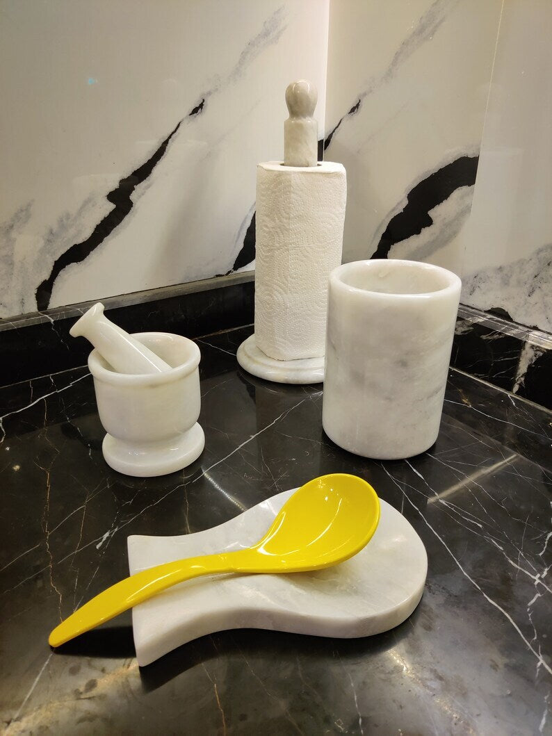 Our Spoon Rest is made of natural marble stone, it does not absorb any moisture, odors, or fats from food or soup. Marble stone is valued for its contrasting veins of color which can add aesthetics to your kitchen counter-top.