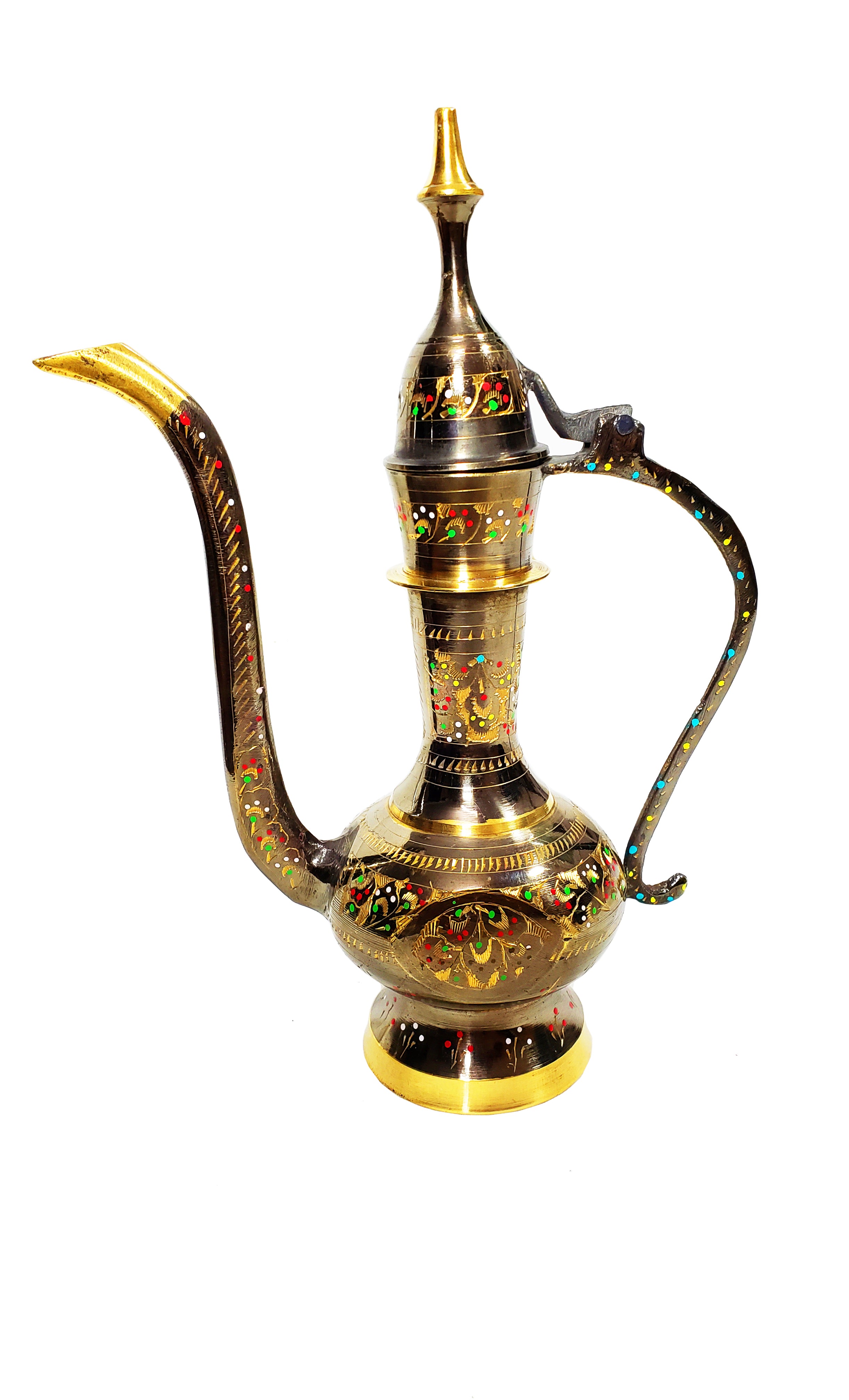 • Tall Brass Pitcher coffee pot Vintage boho etched Handled Vessel Solid brass with handle