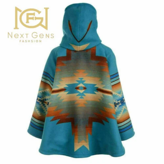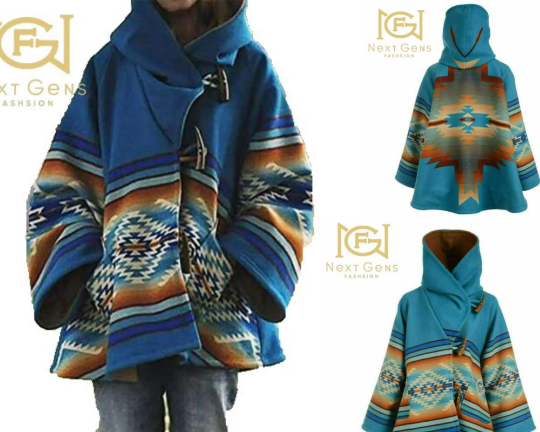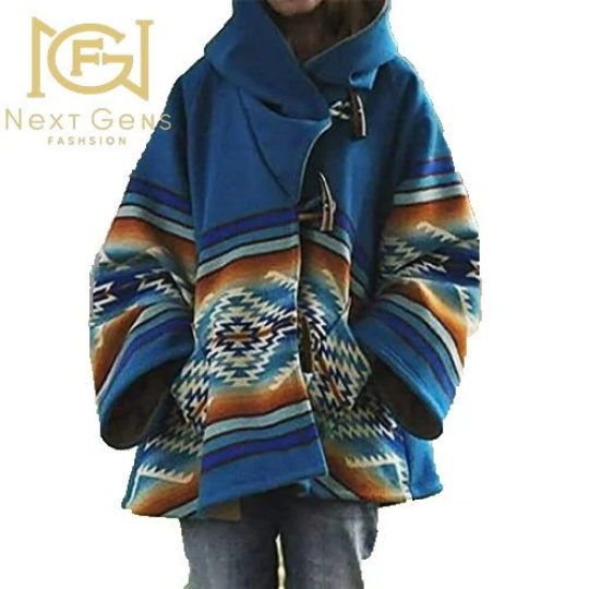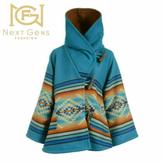 Women's Wool Coat Claw Button Hooded Jacket Poncho Overcoat Warm Outwear